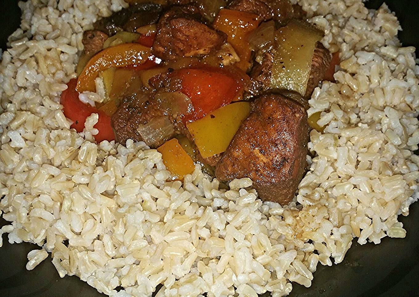 - Add bell peppers and mushrooms. Let simmer for 15 minutes with covered pan.