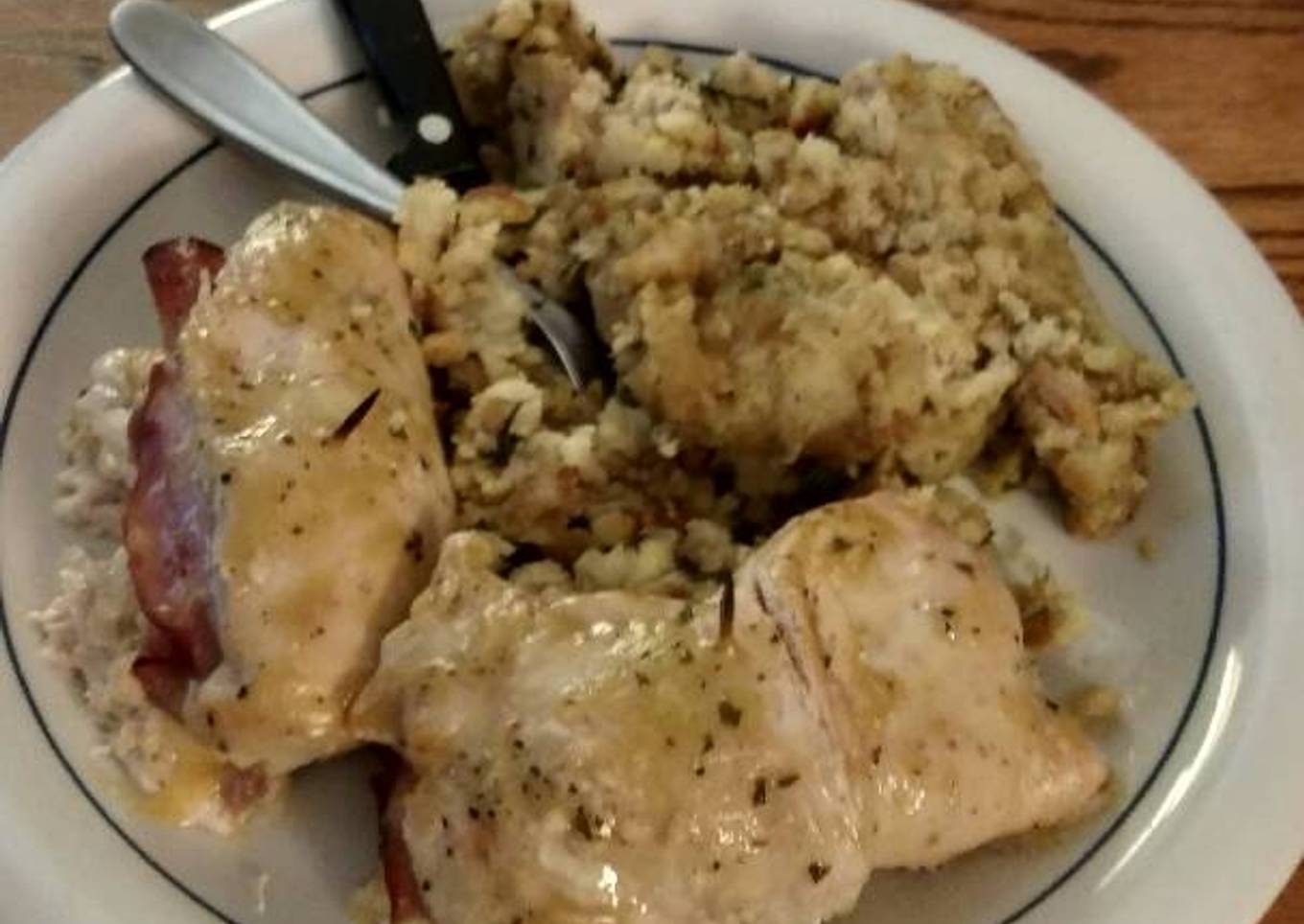 - Enjoy! Use whatever side you wish. I made chicken stove top stuffing.