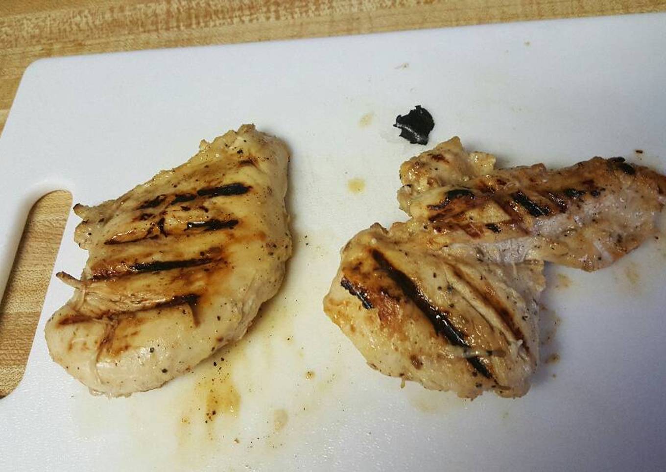 - Heat a grill plate on the stove top over medium heat or preheat charcoal grill. Arrange chicken on grill plate/grill. Cook approximately 8 minutes per side or until center of chicken registers 180 degrees on a meat thermometer.