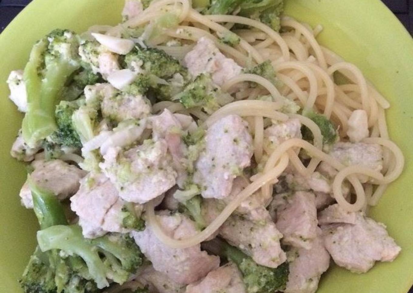- Put spaghetti chicken alfredo on plate and put on Parmesan cheese